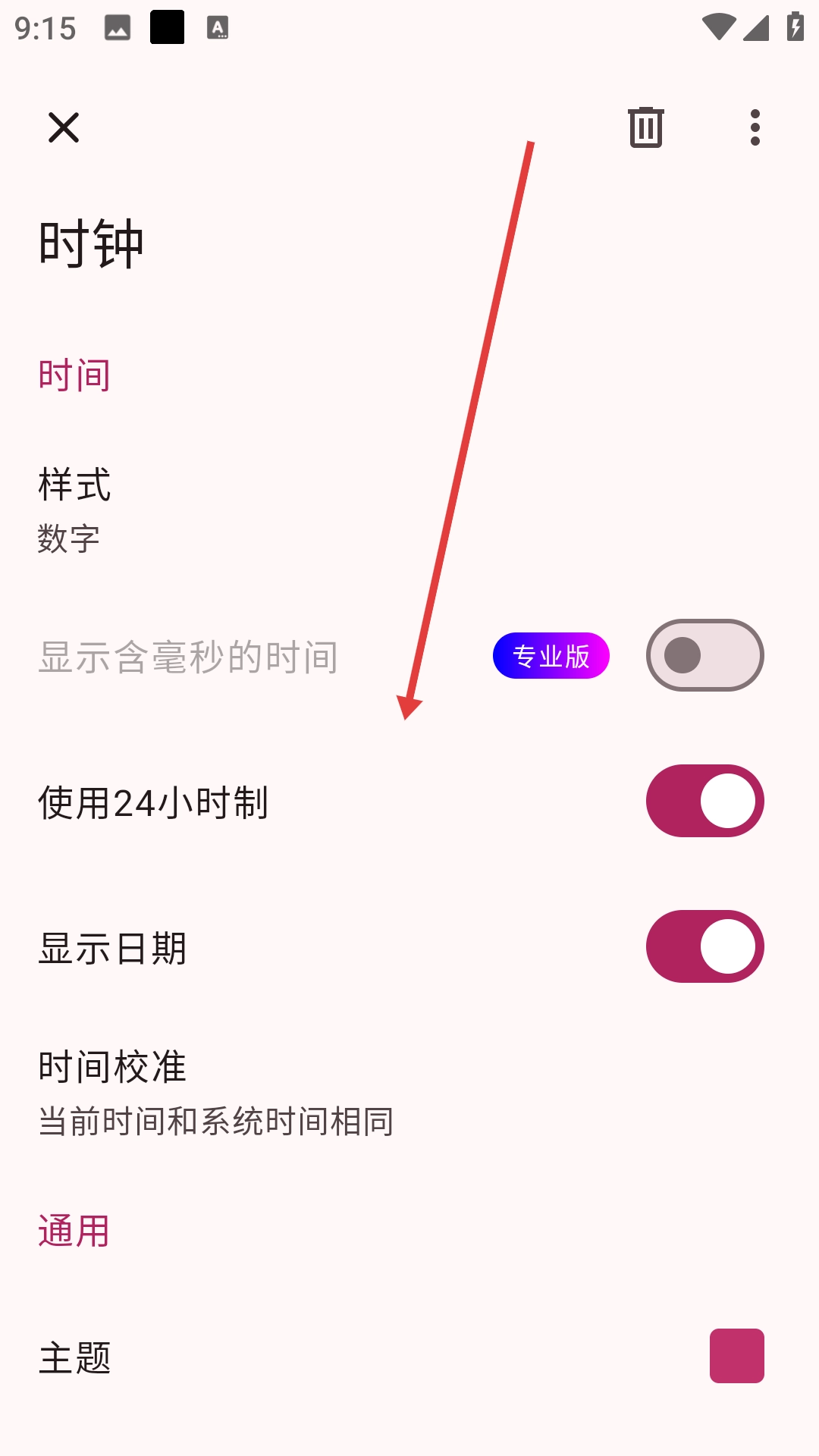 4、点击时钟即可进入设置界面,在该界面中能够设置24小时制的使用、日期显示等选项,以此优化时钟的显示效果。