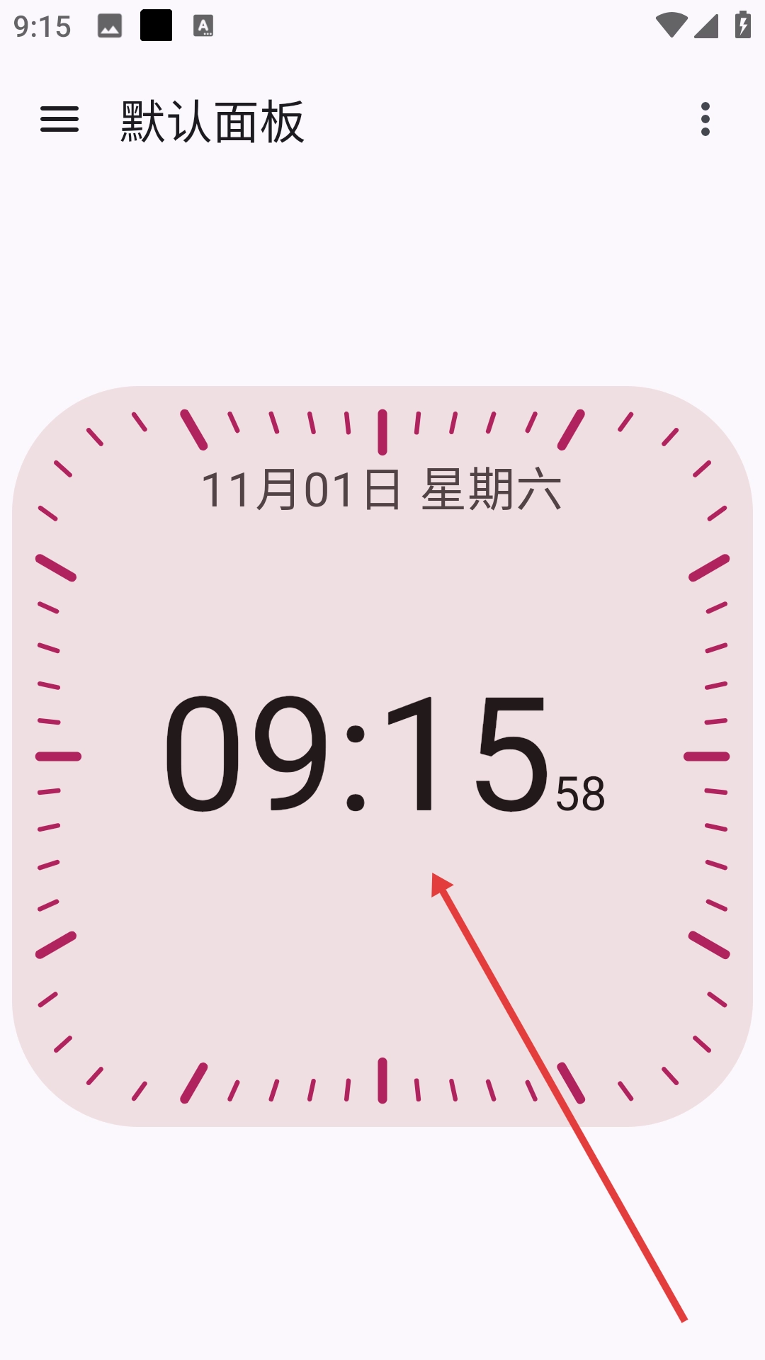 3、添加时钟后,默认面板会呈现出带有日期与时间的时钟界面,例如11月01日星期六09:15这样的显示形式。