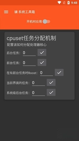 5、现在多数手机都搭载了多核处理器,通过这款软件,我们可以对每个处理器在手机后台与前台任务中的具体分配进行合理调节,从而使手机运行各类程序时的速度得到提升。