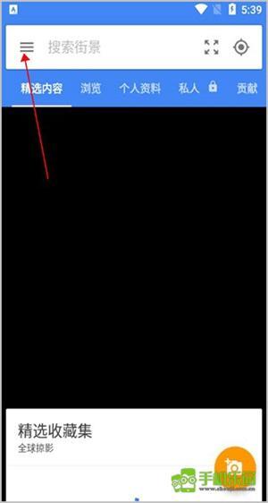 1、在本站安装谷歌街景地图安卓版,打开应用后在顶部搜索栏输入“街景”进行搜索,然后点击左上角的按钮进入菜单界面。
