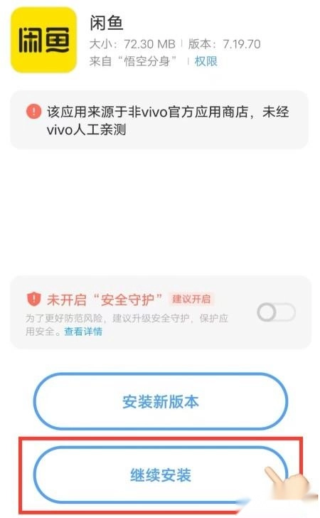 4、点击”继续安装“(不要点安装新版本)