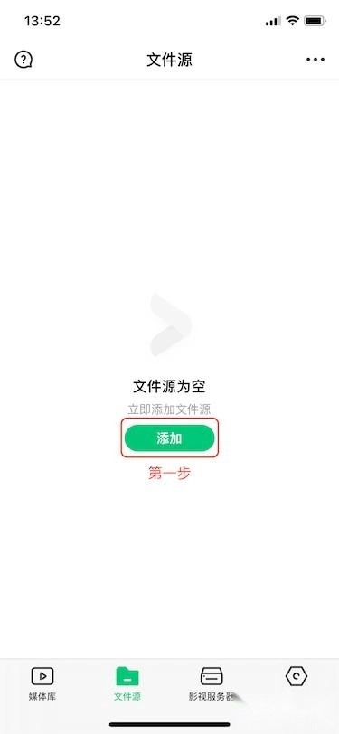 初次打开VidHub App后,能看到“媒体库”板块旁的添加按钮,此时点击该“添加”按钮即可完成第一步操作。