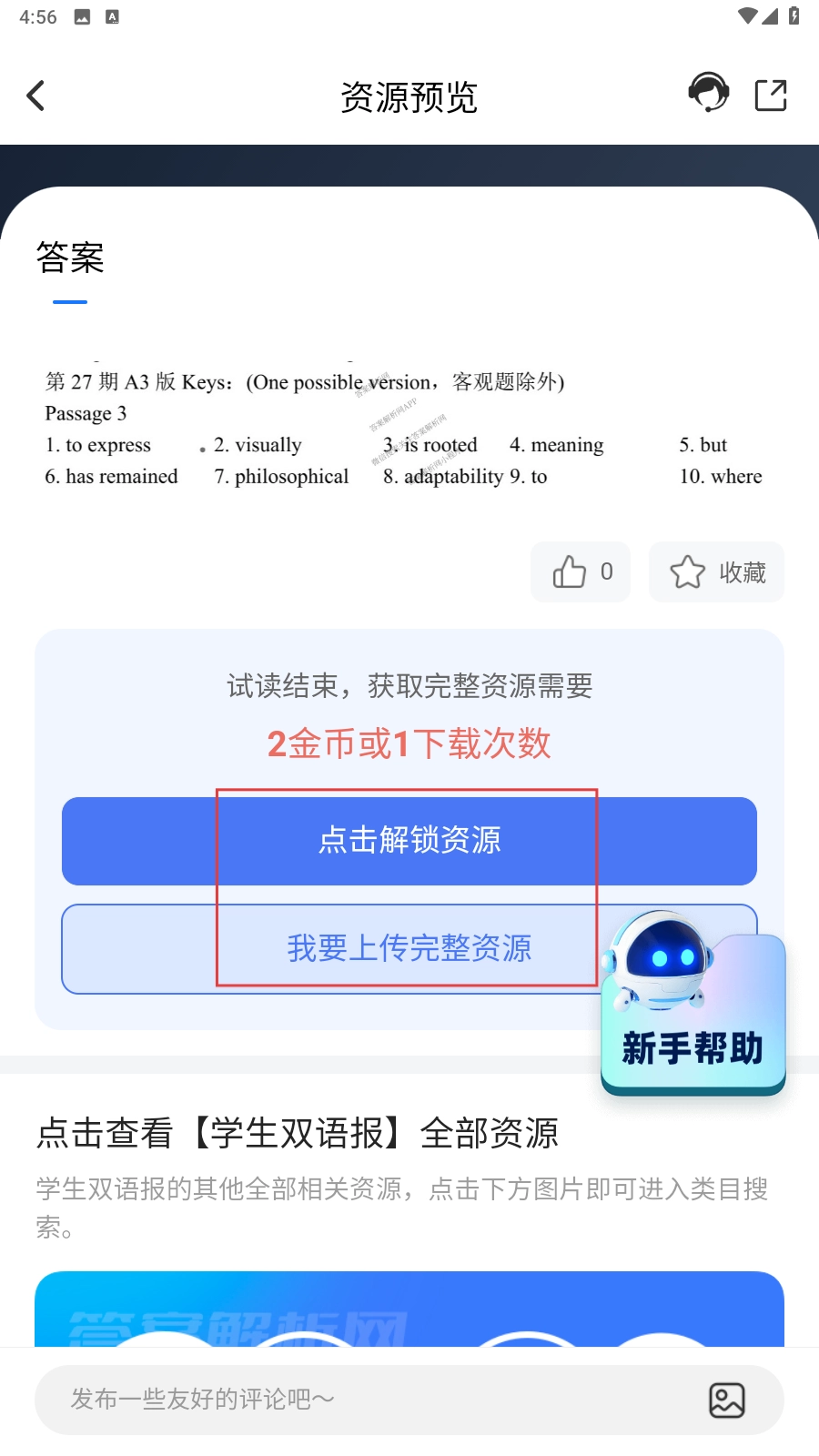 4、进入资源预览界面后,点击【点击解锁资源】按钮,即可获取完整资源。