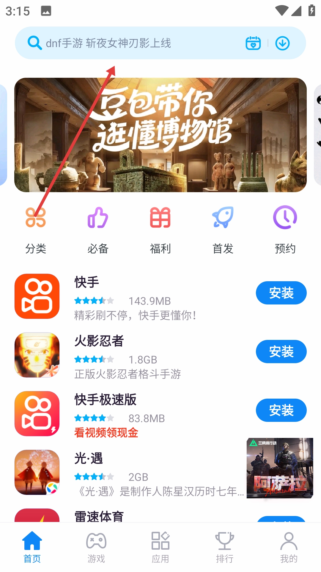 2、在搜索页面的搜索栏中输入要查找的应用名称。