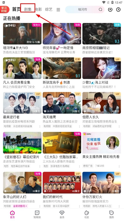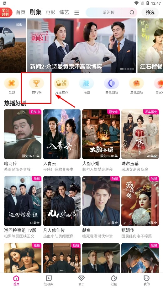在剧集页面,点击【排行榜】功能按钮,即可查看剧集的排名情况。