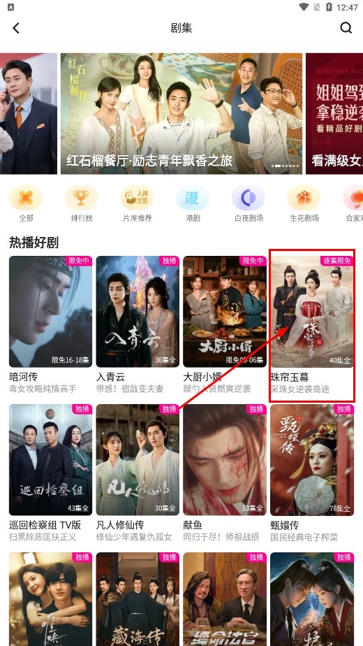 3、挑选自己感兴趣的剧集,比如【珠帘玉幕-剧集封面】,点击该封面即可进入剧集详情页面。