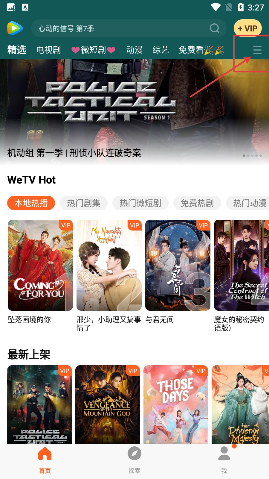1、打开WeTV软件后,在首页点击右上角的三条横线菜单按钮,展开全部频道选项。