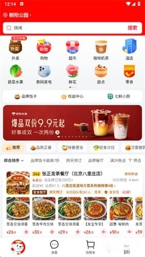 1、打开京东外卖,点击上方搜索框。