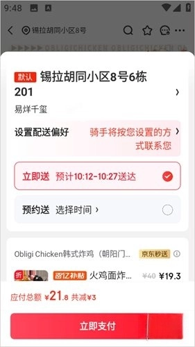 我们主打的是“最快9分钟送达”的极速配送体验,像外卖、超市购物、鲜花订购、药品购买这些常见的生活需求,都能享受到这样的极速送达服务。平台对大多数订单都承诺在60分钟内送达,而且还支持精准预估送达时间,比如会明确告知用户“28分钟送达”。这背后依托的是京东旗下达达集团的即时配送网络,也就是达达秒送,凭借这个网络,我们的配送准时率达到了98.7%之高。这样一来,用户就能清楚地知道自己需要等待多久,不用再因为长时间不确定等待时长而感到焦虑了。