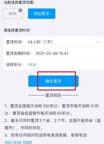 3、消耗1积分就能置顶啦!