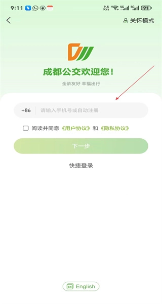 3、进入登录界面后,输入手机号码,勾选用户协议,为完成登录操作做好准备。