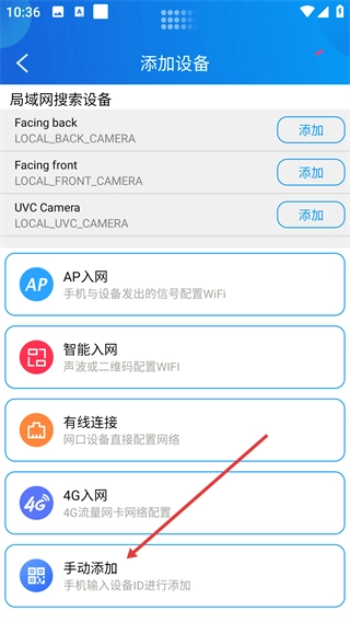 2、在添加设备的界面中,选择【手动添加】这一选项,即可进入设备信息的填写页面。