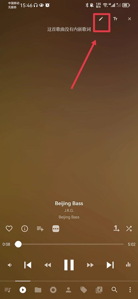 2、要是显示这首歌曲没有内嵌歌词,就点击右上角那个笔形状的图标。