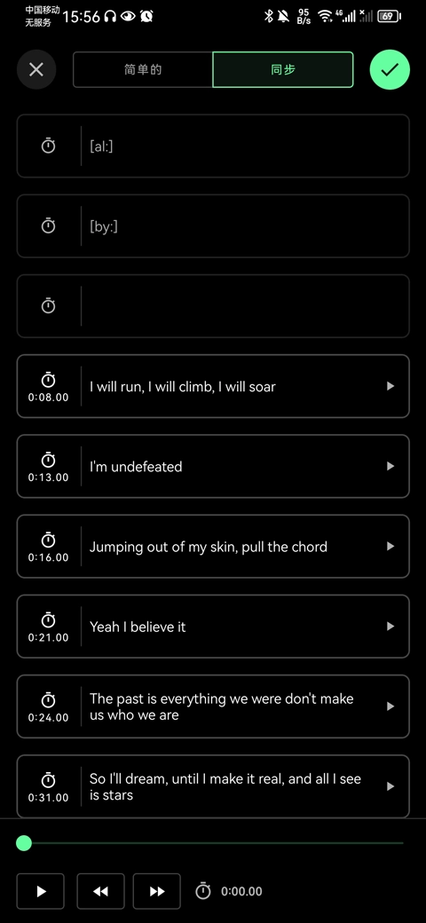 5、此外,你还能在同步界面里播放歌曲,并且歌曲播放时会自动同步歌词。