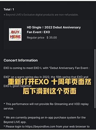 1、第一步是打开Beyond Live应用,接着找到你打算购买的演唱会场次,这里就以EXO的演唱会为例;