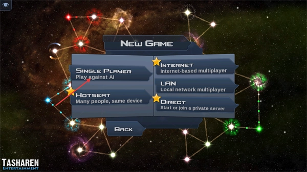 2、进入【New-Game】界面后,能够选择【Single-Player】(与AI对战)、【HOTSEAT】(多人共用一台设备)等模式。