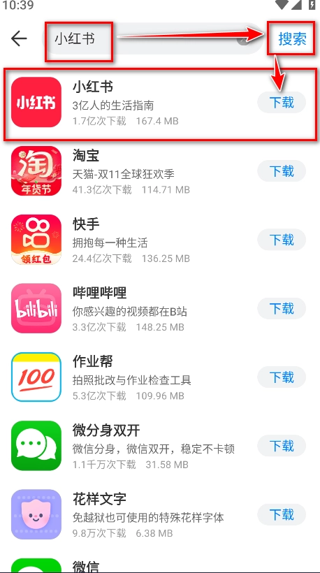 2.输入软件名称后点击搜索,接着点击对应软件右侧的按钮。