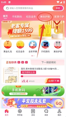 1、第一步要明确自己的购买需求,比如我目前打算选购美妆护肤品,确定后点击进入对应的页面。