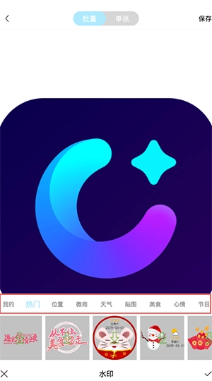 2、为用户提供当下热门话题相关的水印,让你的照片也能紧跟潮流;