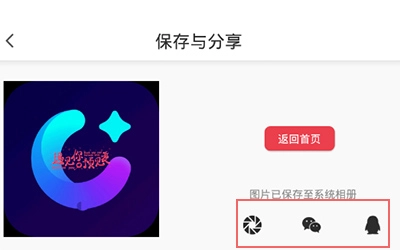 4、接下来点击保存就可以了,也能通过QQ、微信等途径分享给其他人。