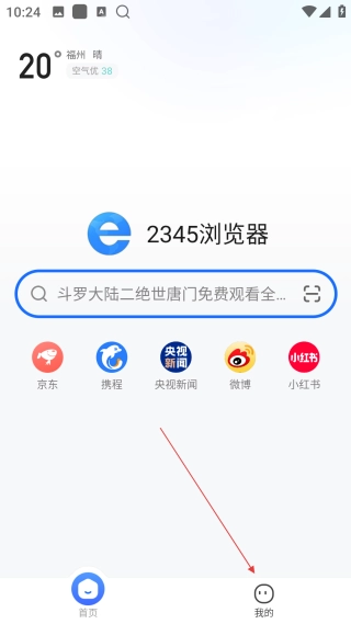 1、打开2345浏览器首页后,点击页面底部的【我的】选项,即可进入个人中心页面。