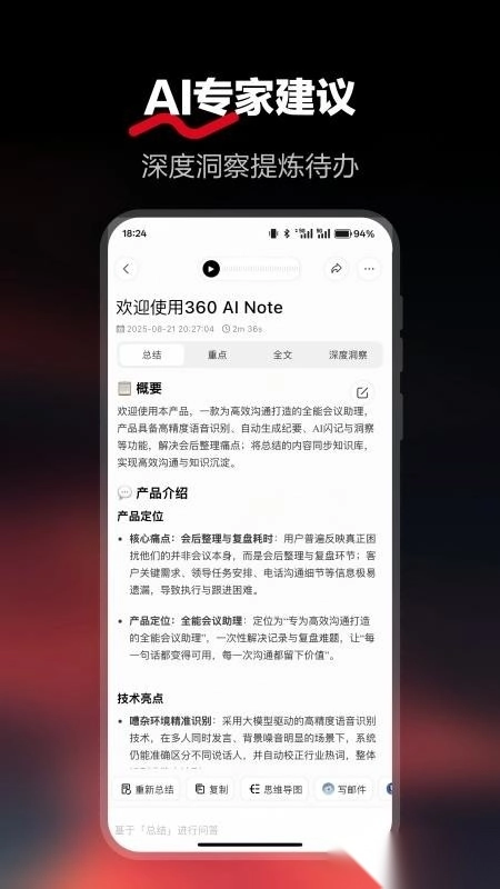 可以实时查看AI专家建议,轻松提炼待办事项,便捷获取专家的专业指导。