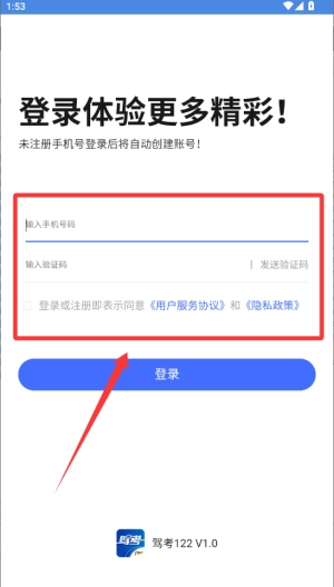 1、点击同意按钮进入应用主界面,开启您的驾考学习之旅。