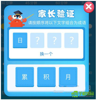 第二步:进入设置页面之前,需要先通过一个简单的家长成语验证环节。