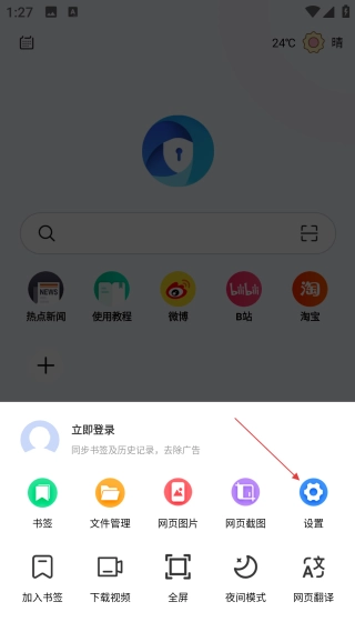2、在功能菜单里,点击【设置】选项,即可进入该应用的设置页面。
