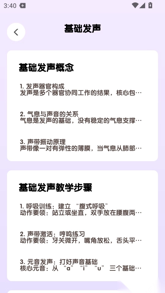 4.如此用户就可以查看详情的唱歌基础教学步骤了