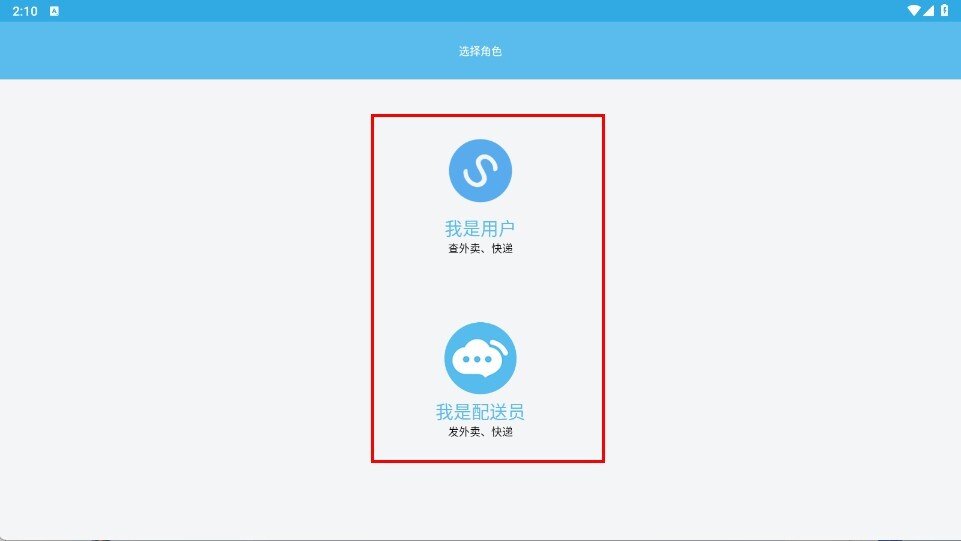 在角色选择页面,您可以根据自身需求点击【我是用户】或【我是配送员】的图标,从而进入相应角色的操作流程。