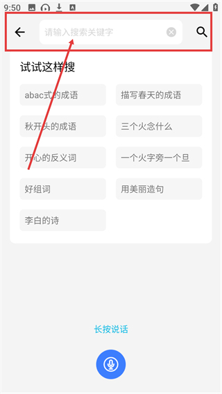 1、在首页点击【汉语字典】选项,即可进入汉语字典的搜索页面,查找字词、诗词等内容。