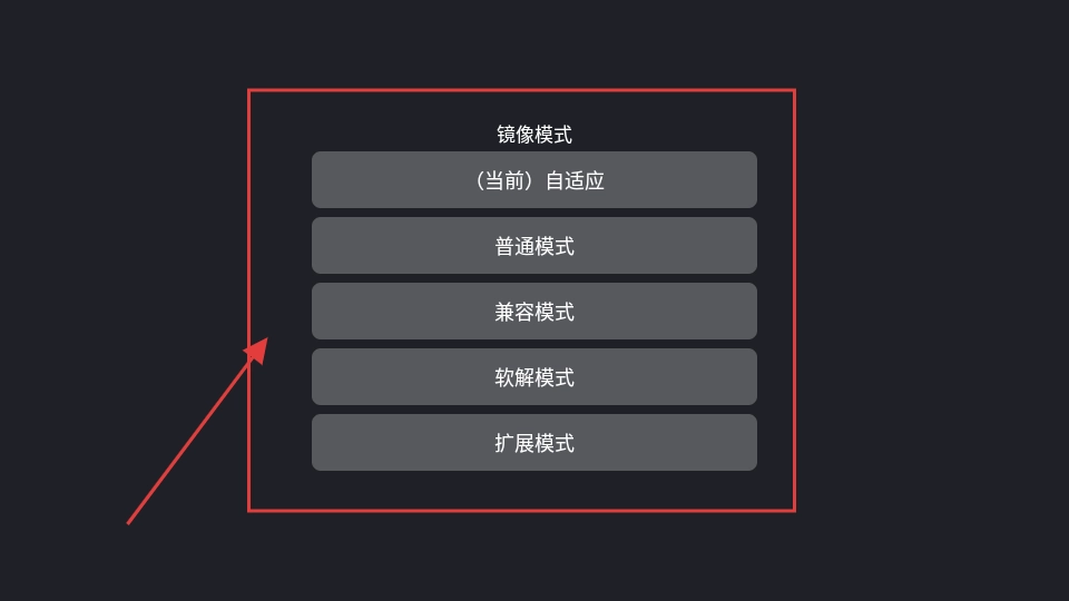 4、进入镜像模式选择界面后,能看到自适应、普通模式等选项,大家依据自身需求挑选合适的模式就行啦。
