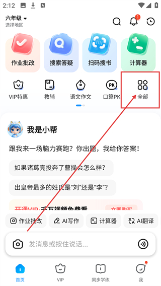 进入学习工具主界面后,点击【全部】按钮,即可打开工具库查看所有学习功能。