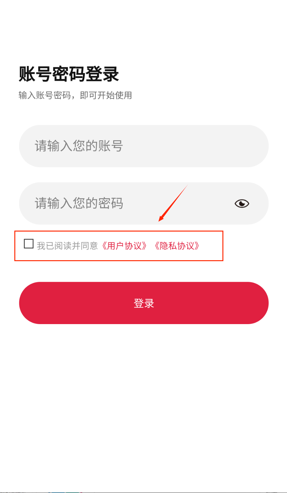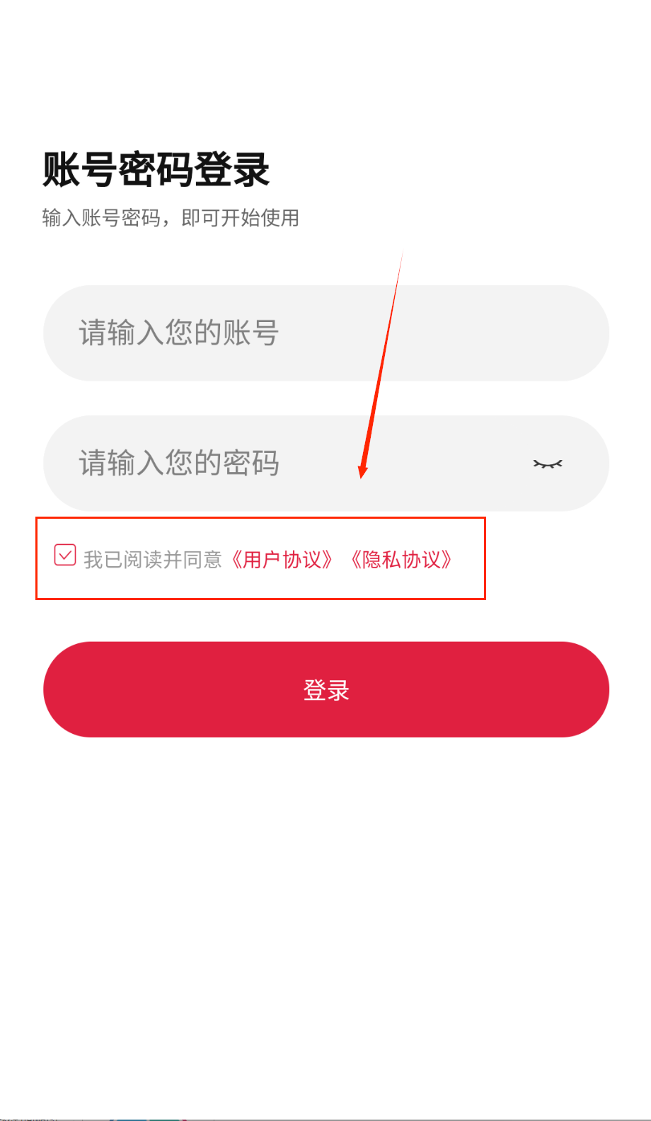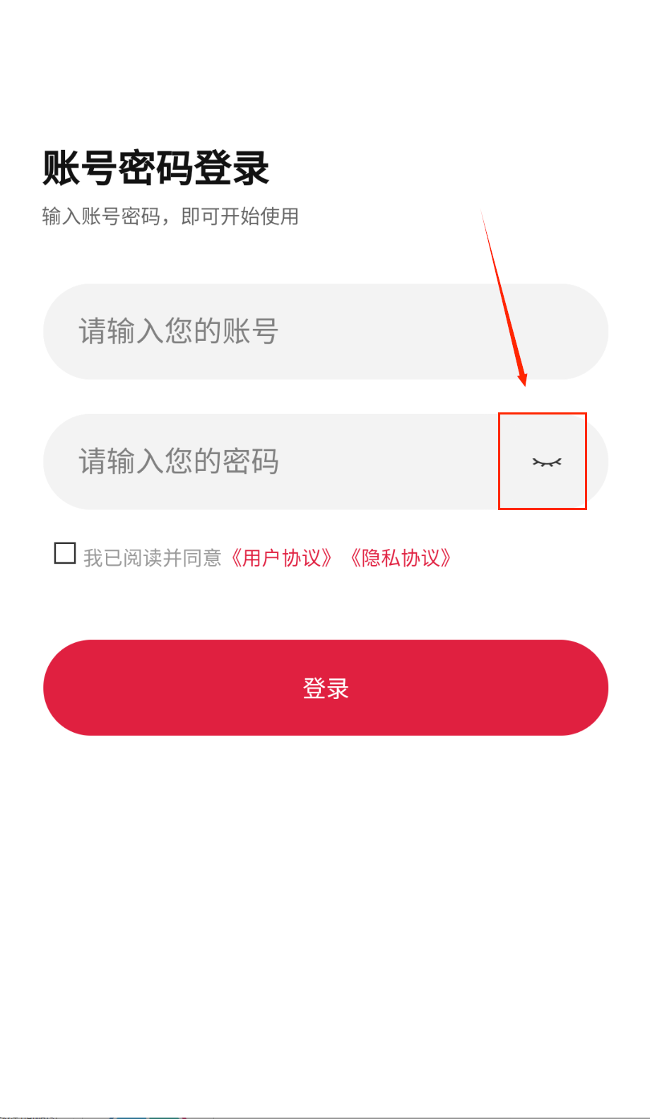 3、登录时要先输入账号和密码,记得点击眼睛图标确认密码是否正确。并且小心别输错了哦。