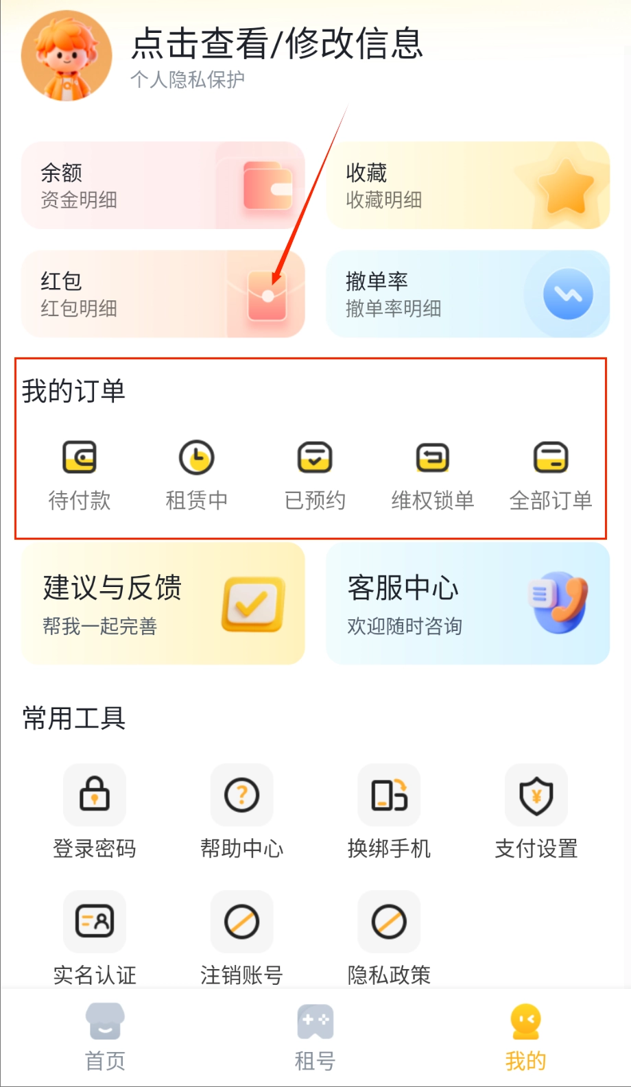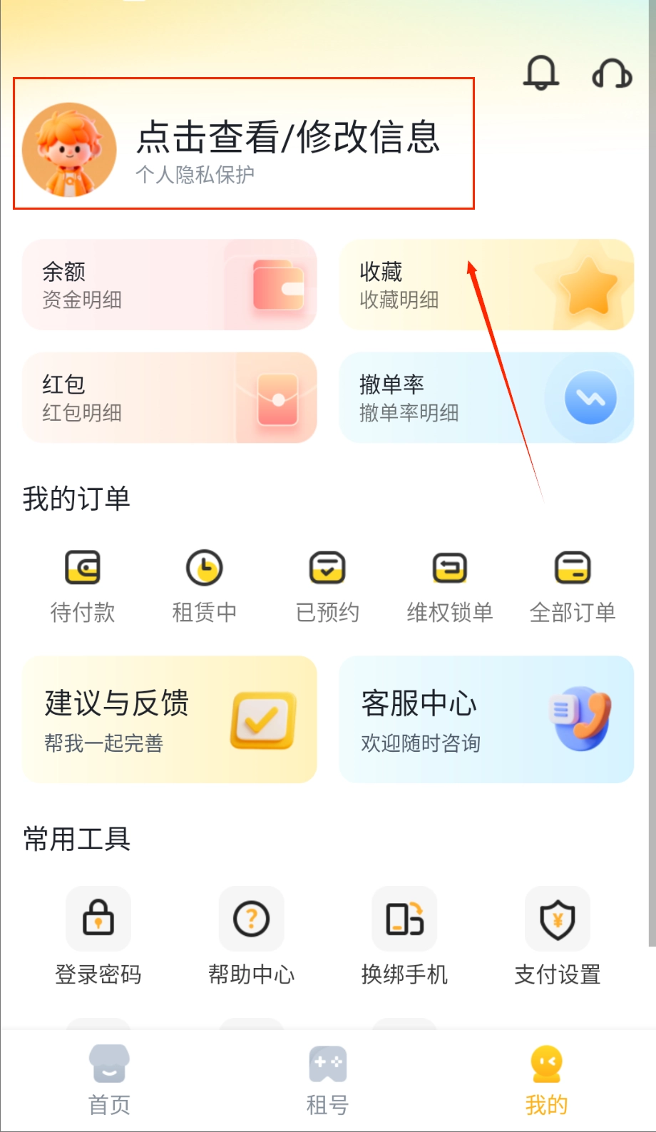 3、个人中心集中管理所有租赁历史记录和收藏的账号信息,支持多终端数据同步方便用户随时随地查看使用。
