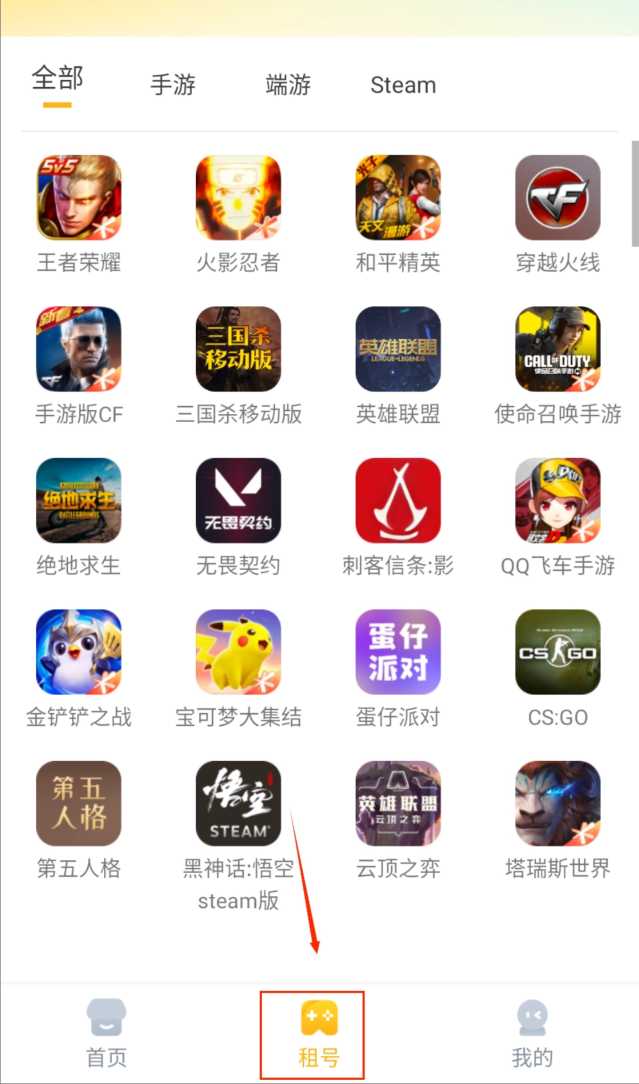 2、在首页的游戏分类列表中选择你想要游玩的游戏作品,仔细浏览不同等级和装备配置的租赁账号详细信息与参数。