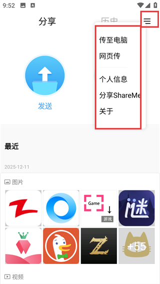 1、在分享页面点【发送】按钮,能进入文件选择界面,后续可挑选要分享的应用或文件啦。