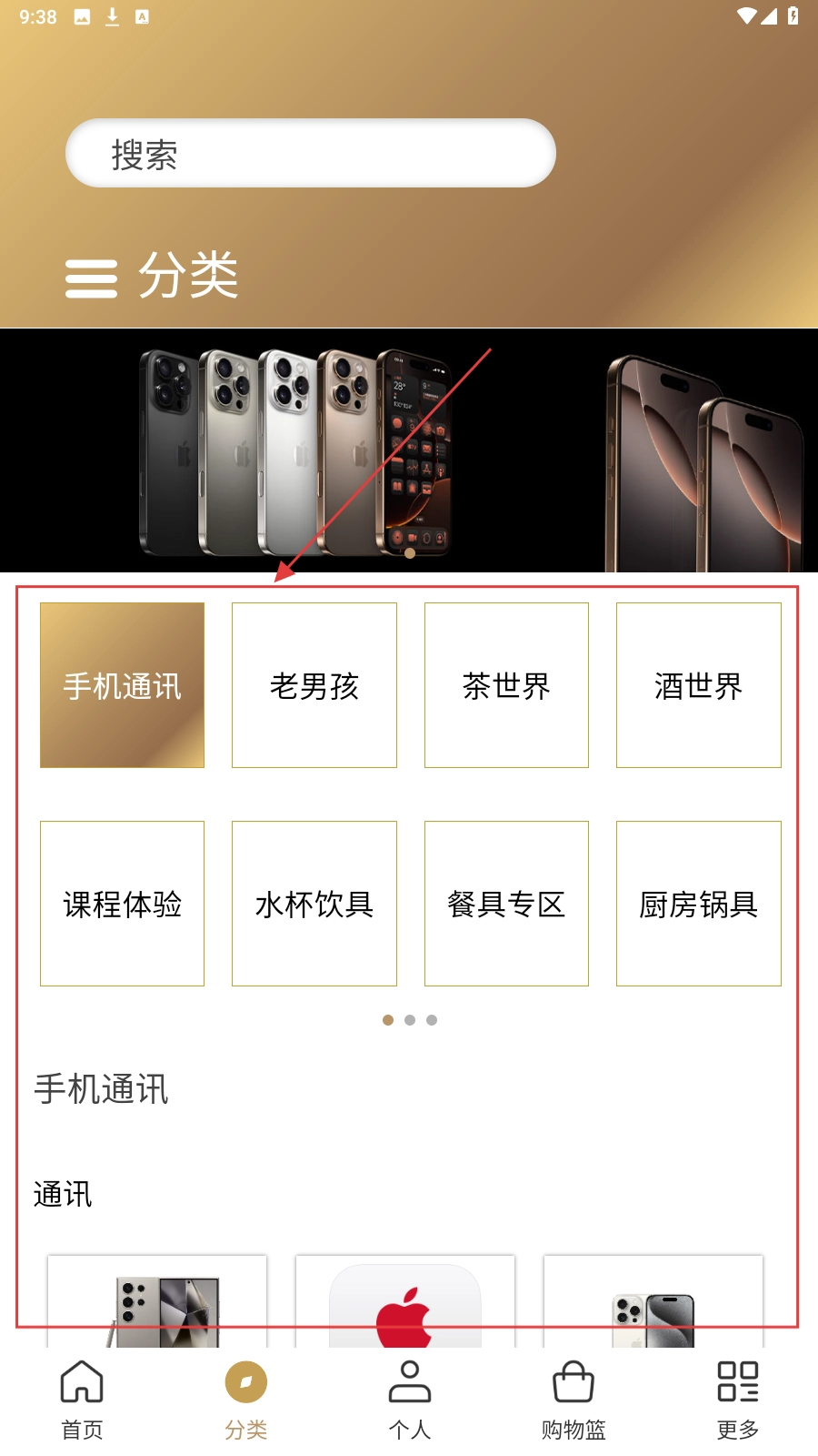 4、还可以切换到【分类】页,查看“手机通讯”等分类,探索其他商品品类。
