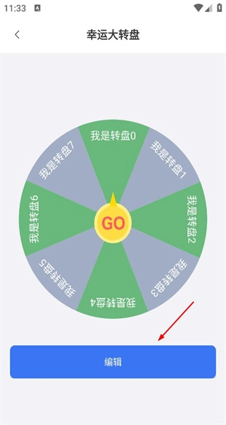 4、开启幸运大转盘功能,进入对应界面后,能看到转盘本体与编辑按钮,点击编辑按钮,即可着手自定义转盘的各项内容。