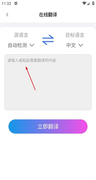 2、进入在线翻译页面后,找到源语言与目标语言的设置区域,输入待翻译的内容,为执行翻译操作做好准备。