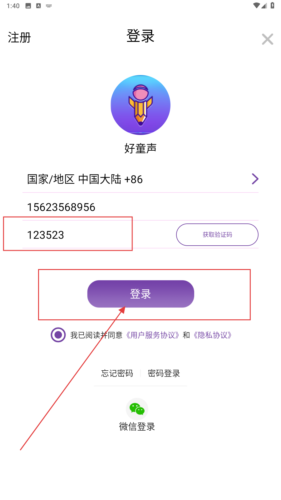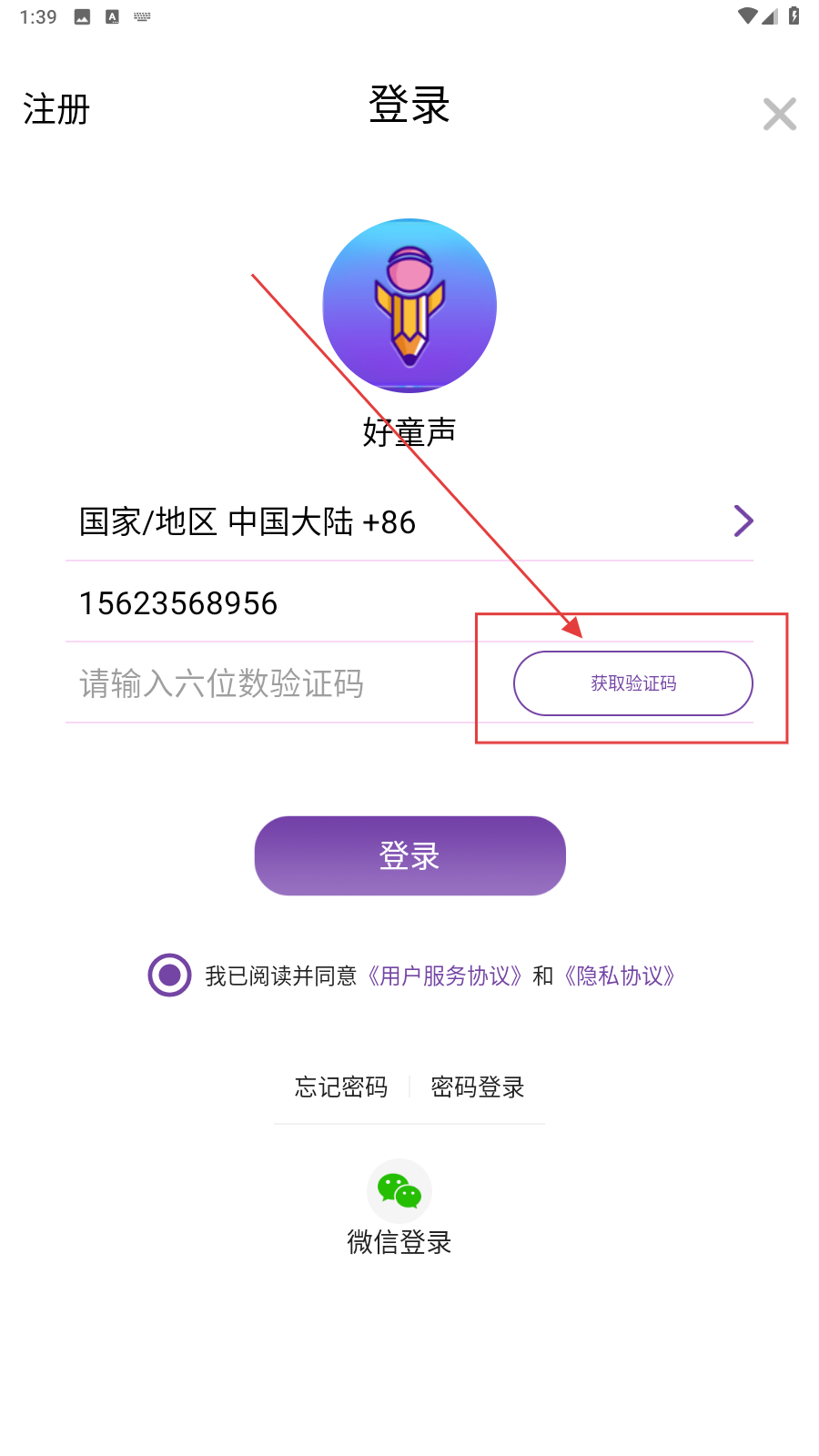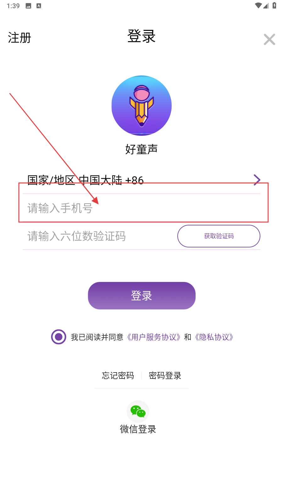 1、打开应用,填写手机号。