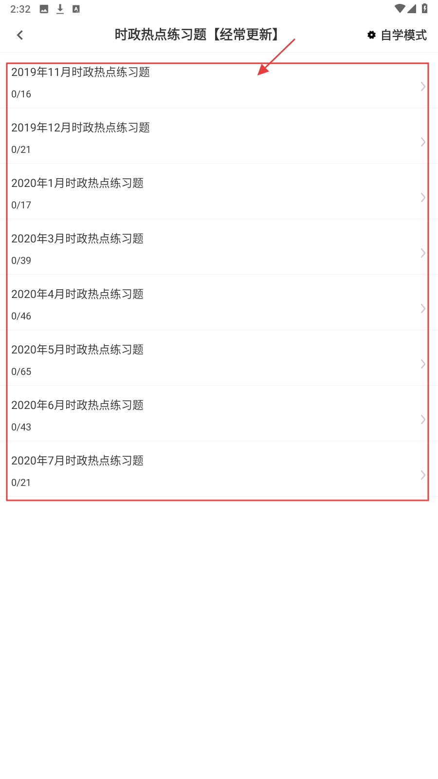 2、在章节练习,点【时政热点练习题-经常更新】,展开练习列表。