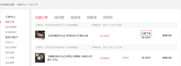 一般在订单发货后的48小时内,系统会自动发送电子发票,您可直接在前台的订单详情中查看。不过需要注意的是,若订单发生退货,对应的电子发票将作废,且该订单中的电子发票也将无法查看。