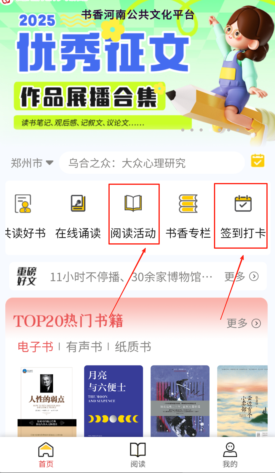 3、参与每周读书挑战赛可获得积分奖励,可通过社区模块分享读书笔记结交书友。