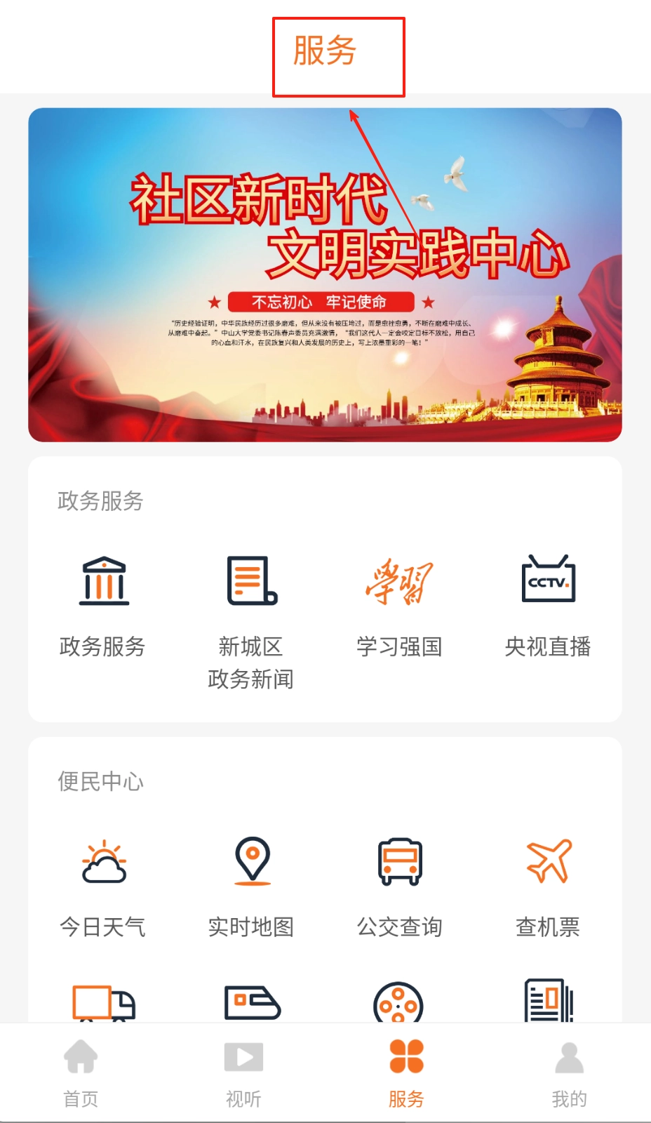 3、通过底部导航栏进入政务中心查询政策文件,使用便民服务模块完成生活事务处理。