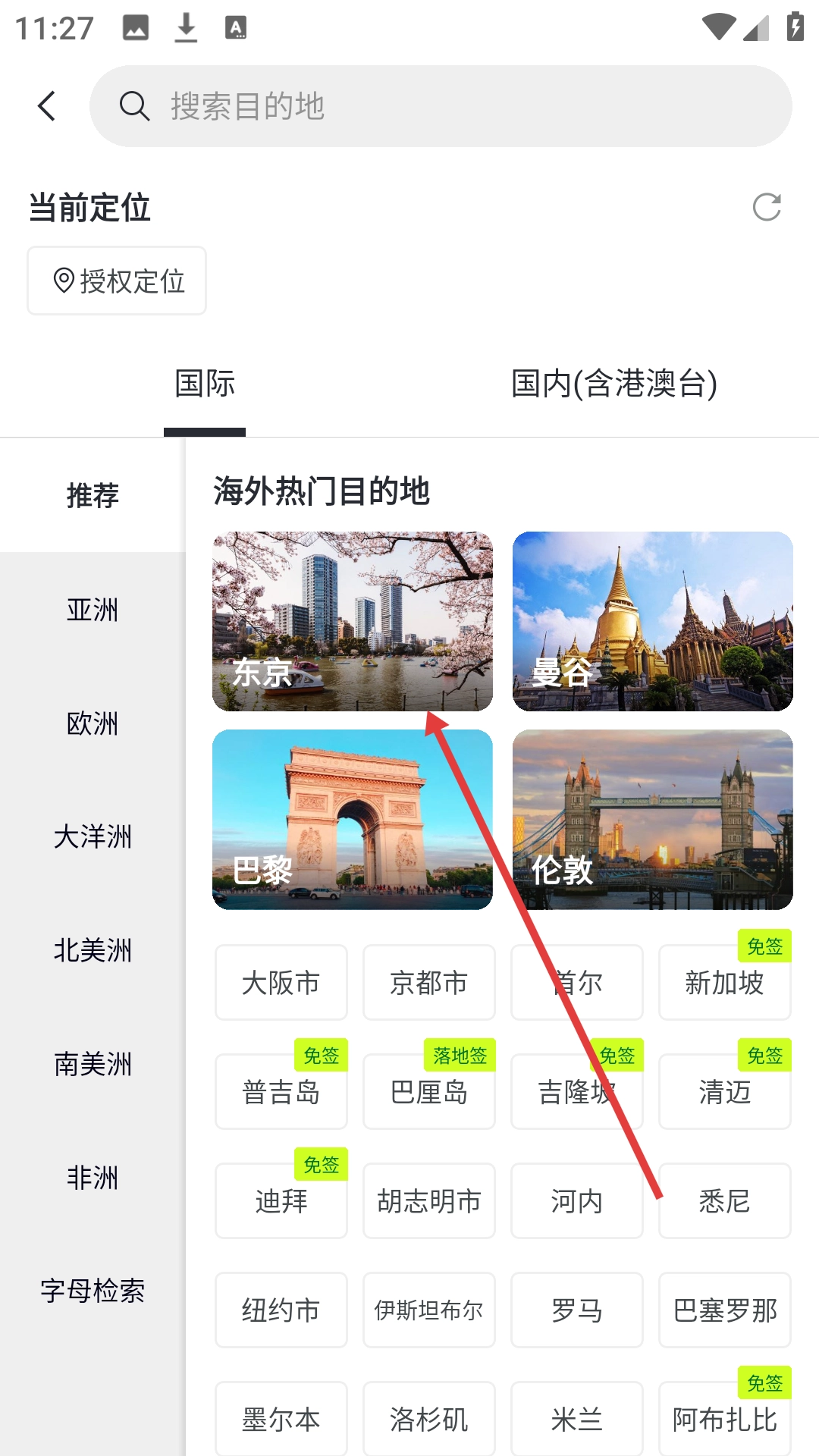 2、在酒店搜索界面输入目的地(例如【东京】),接着选定入住与退房的日期。