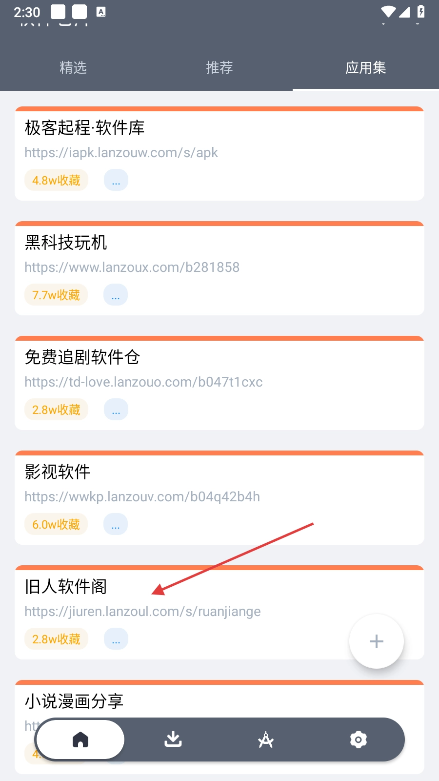 进入应用集板块后,挑选自己喜欢的软件库(例如“旧人软件阁”),点击进入该软件库的仓库页面。