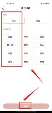 2、进入偏好设置,勾选性别、全部分类,点击【确定】。