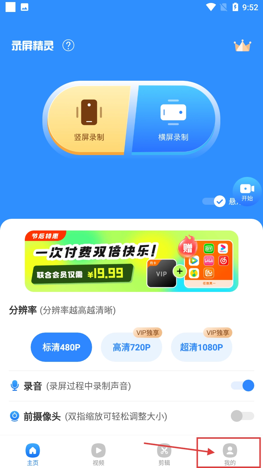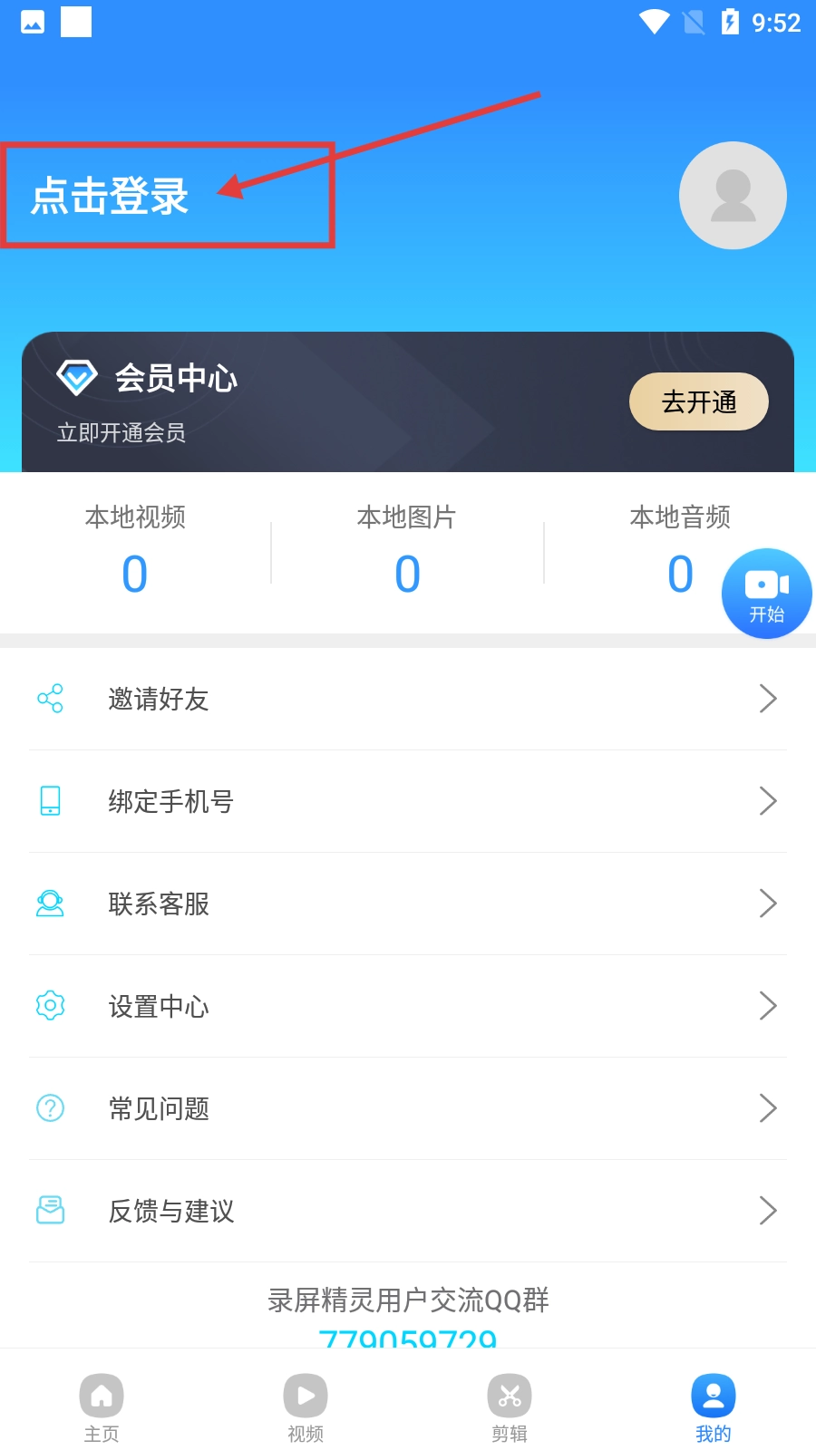1、在【录屏精灵】的主页中,点击右下角的【我的】按钮,就能进入个人中心界面。